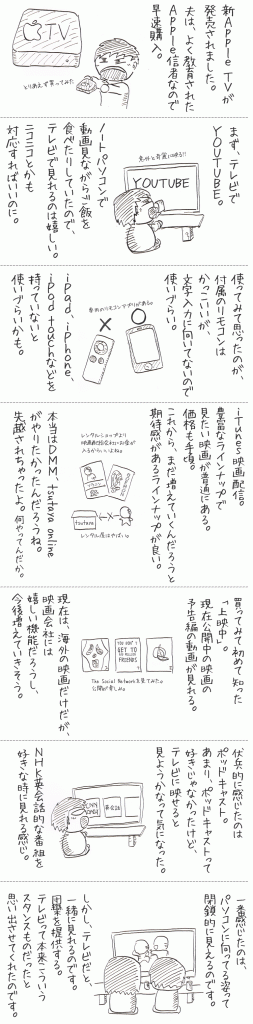 Apple TVってMac専用なイメージがありますけど、MacとかWindowsって関係なく独立した製品なんですね。 実際に見てみたいと分かりにくいと思うのですが、テレビがインターネットと繋がるってかなり近未来な感じです。google TVも出ますがテレビの買い替えっ... -
